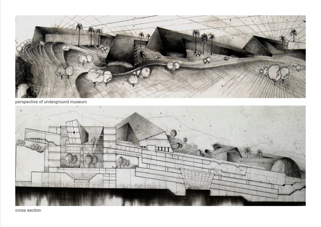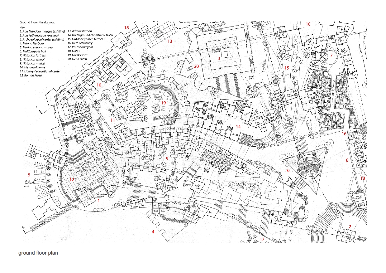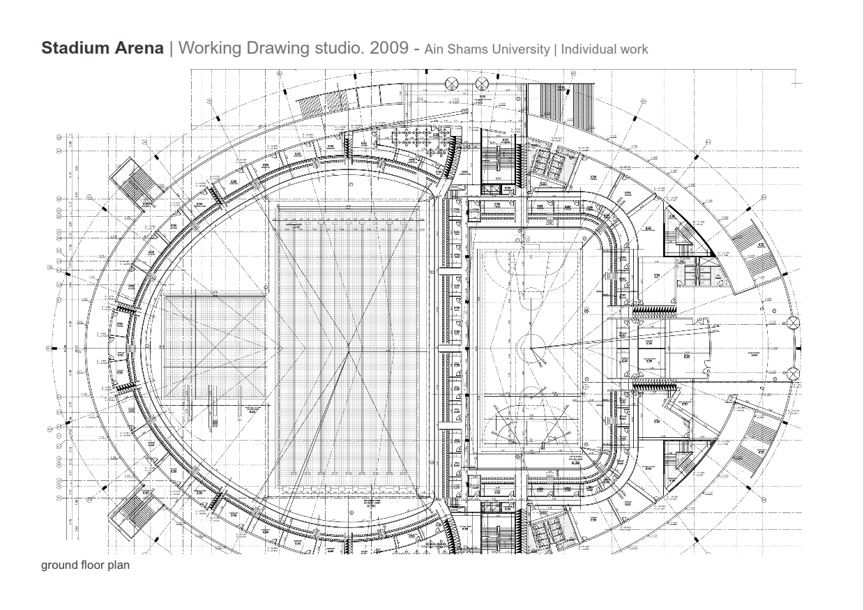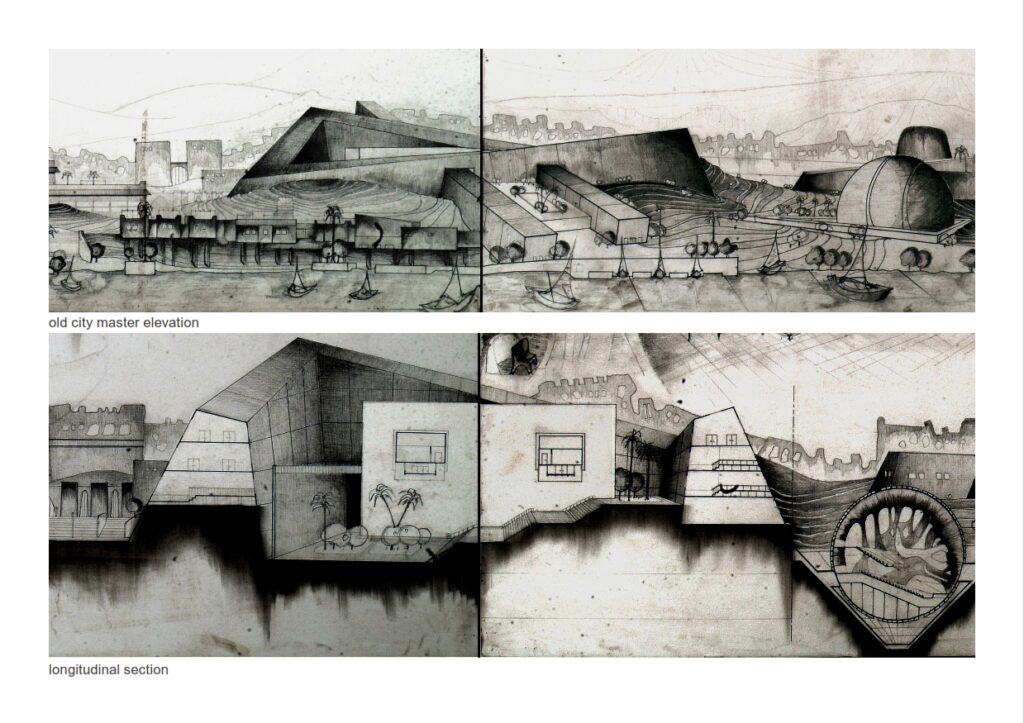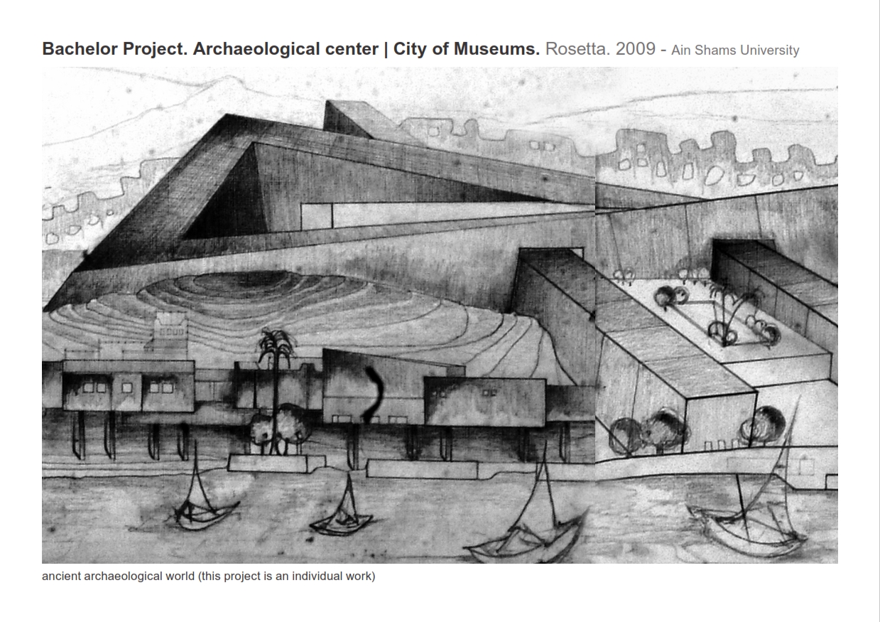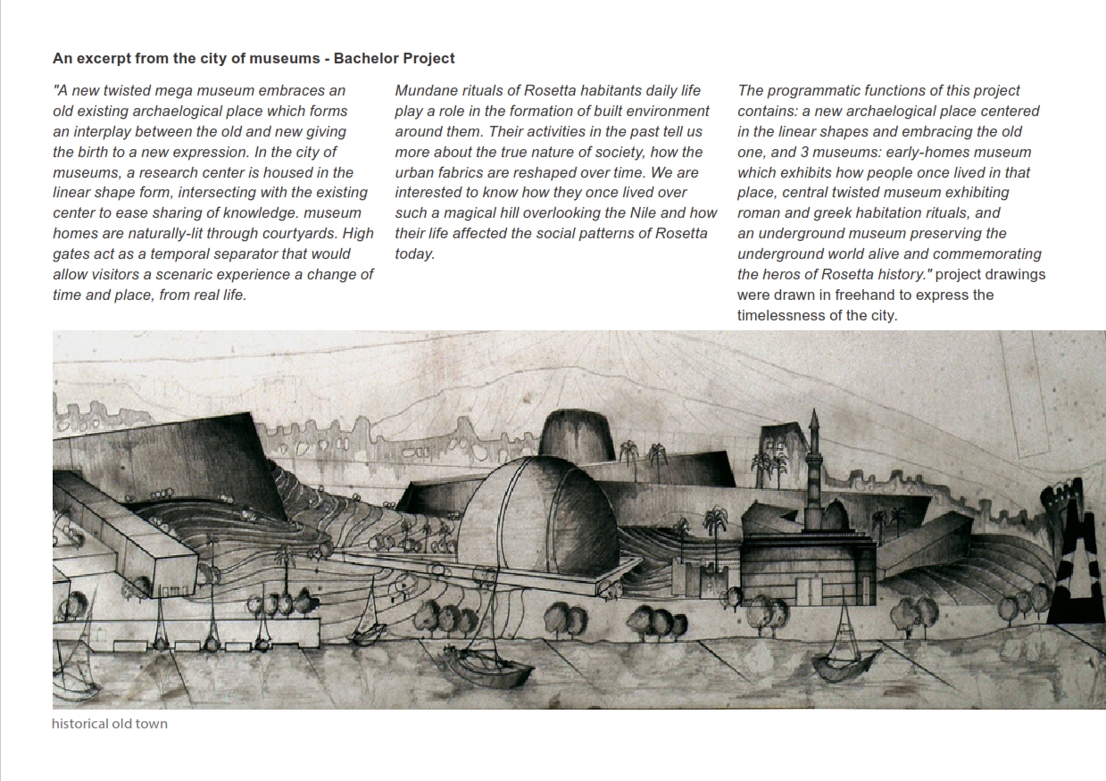 historical old Rosetta town, Egyptancient archaeological city of museumsunderground museum reviving the history and spirit of the placeold city master elevation and longitudinal section showing the narrative of the museumground floor plan layout for the citystadium arena – construction working drawings detailed sections showing the structure system of the stadiumentrance and steel staircase detail designgrand masterpiece of the iconic tower that aims to achieve low carbon footprintsconstruction details of entrance of housing building – detailed floor plan and elevationprototyping of the housing model with shared kitchen approach